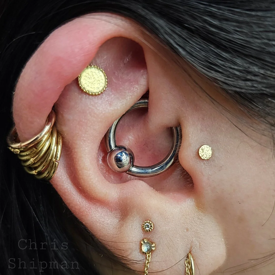 Piercing isn’t just a job for me — it’s my passion and my life. I love making real connections with people and helping clients feel more comfortable in their own skin by bringing their aesthetic goals to life. Whether the idea is yours or mine, I’ll work with you to make it happen — as long as it’s safe, consensual, and shiny, I’m happy. (And if you ask me, bigger and thicker piercings are always cooler.)